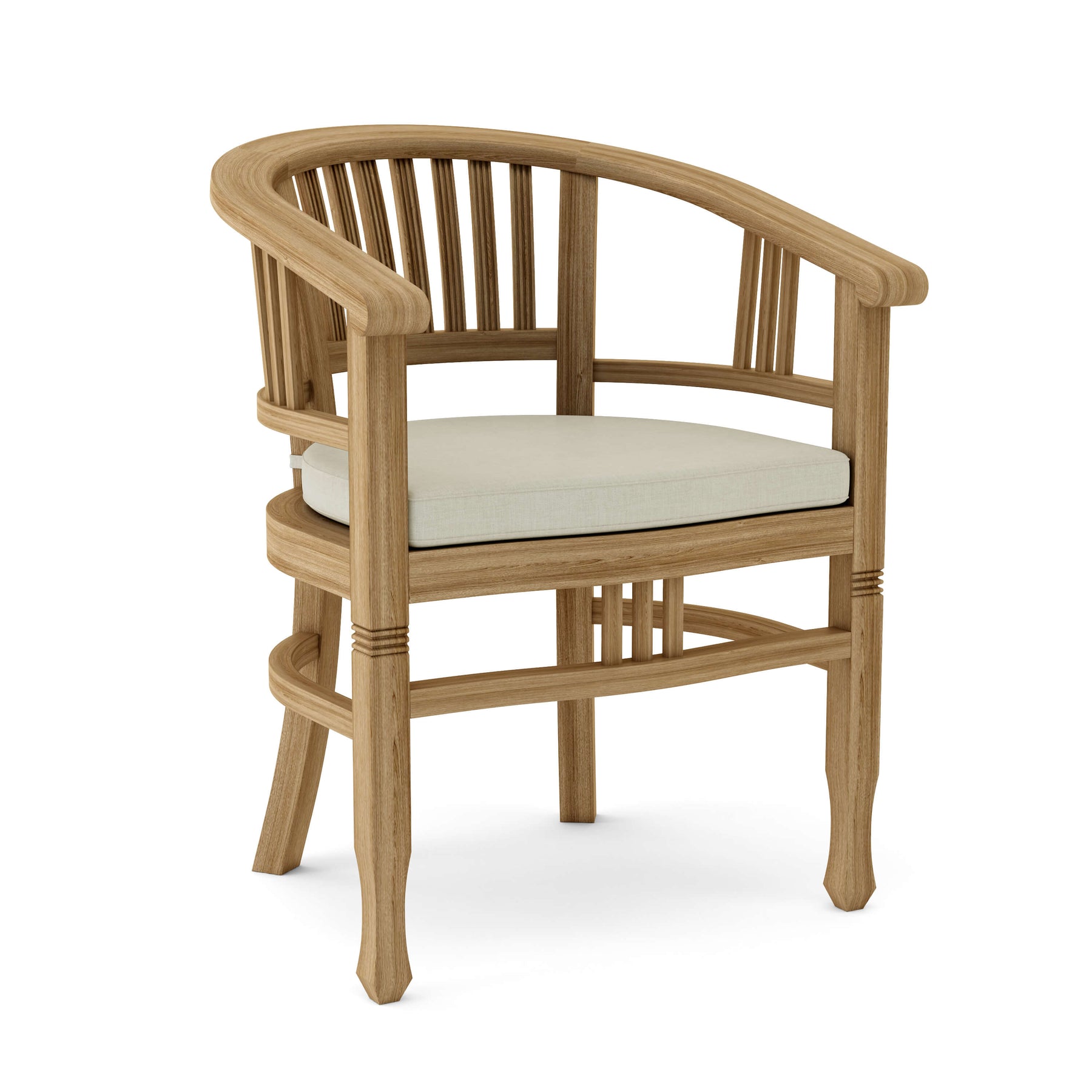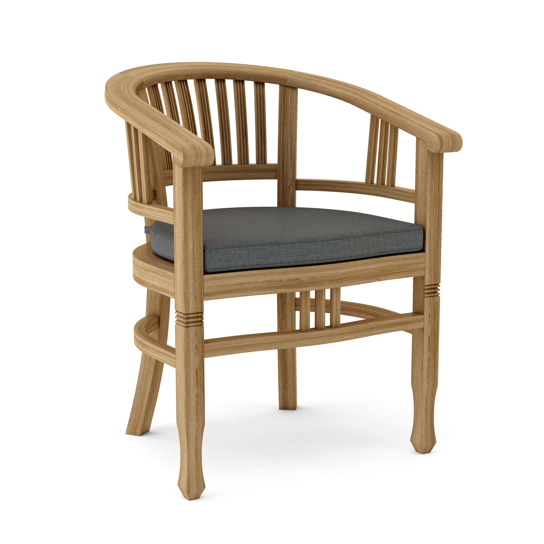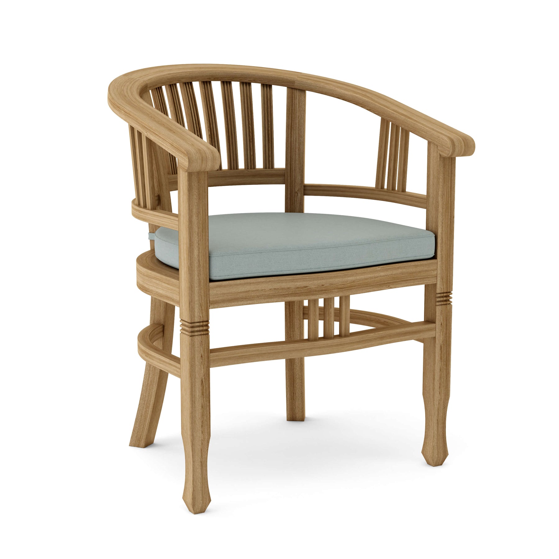 The Captain Dining Armchair is an elegantly crafted piece of furniture that will never go out of style, but quietly blends with any décor or setting. The seat is very sturdy as well as the curved back, allowing greater comfort with each use. Made from kiln-dried Grade-A Teak, it is the perfect material for weathering the outdoors and continued outdoor exposure. Overtime, the chair will weather into a patina grey, or scrub down with soap and water and simple sandpaper to keep in pristine condition. This is a beautiful and functional piece of furniture for your patio or terrace.